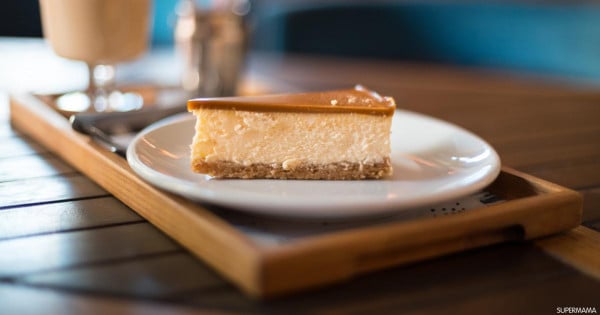 6. الطبقة الثالثة: في كسرولة ضعي الكريم كراميل، الماء والقهوة سخني ليصل إلى درجة الغليان ثم صبيه بحرص على الطبقة الثانية.