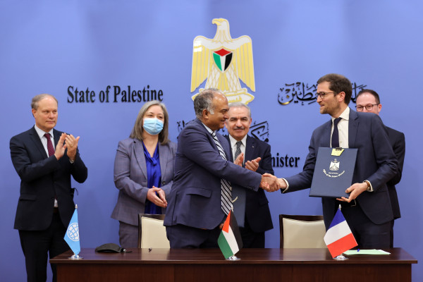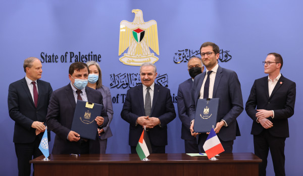 برعاية وحضور رئيس الوزراء د. محمد اشتية، تم توقيع عدة اتفاقيات دعم من الحكومة الفرنسية لفلسطين، عبر الوكالة الفرنسية للتنمية بقيمة 29 مليون يورو، اليوم الثلاثاء في مكتب رئيس الوزراء، برام الله.