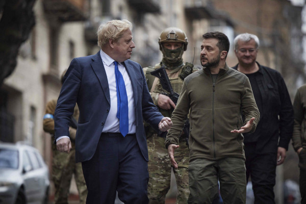 والتقى جونسون الرئيس الأوكراني، فولودومير زيلنسكي، وتجولاً في شوارع العاصمة الأوكرانية.