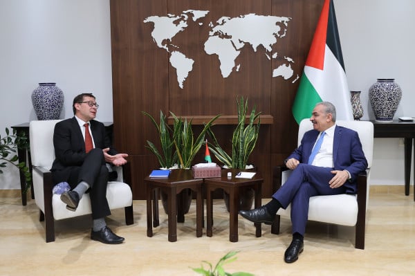 بحثا العلاقات الثنائية.. رئيس الوزراء يستقبل ممثل التشيك الجديد في فلسطين