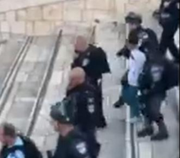نشر على موقع التواصل الاجتماعي (فيسبوك)، صباح اليوم الجمعة، مقطع فيديو، يظهر لحظة اعتقال قوات الاحتلال الاسرائيلي، طفلاً فلسطينياً في باحات المسجد الاقصى المبارك.