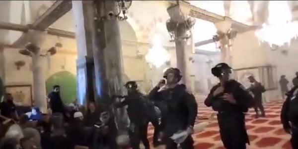 اقتحمت قوات الاحتلال الإسرائيلي، المسجد القبلي في ساحات المسجد الأقصى المبارك، واعتدت على المعتكفين فيه ونكلت بهم، وشنت حملة اعتقالات واسعة بين صفوفهم.