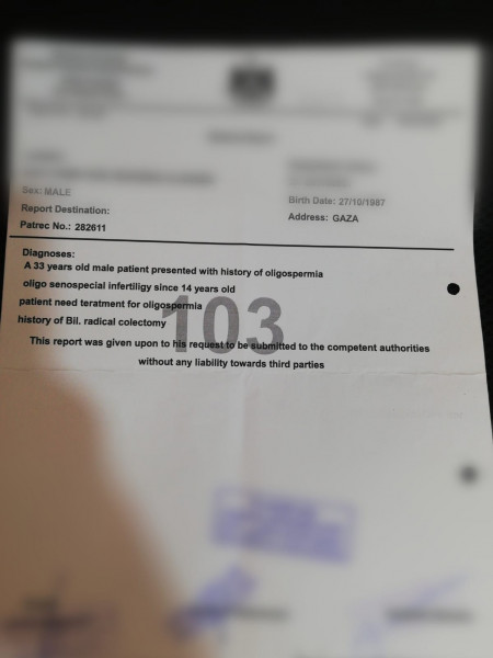 يذكر أن المواطن قام بإجراء ثلاث عمليات أطفال أنابيب باءت بالفشل آملا أن يتم توفير المال اللازم للسفر لإجراء العملية لتقر عينه بصغير يحمله بين أضلاعه.