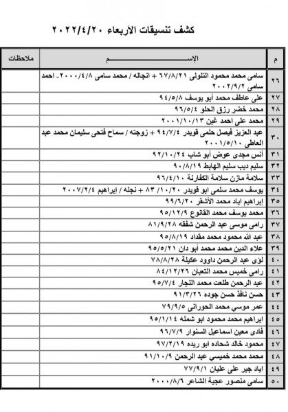 بالأسماء: الداخلية بغزة تعلن كشف "تنسيقات مصرية" للسفر غداً الأربعاء
