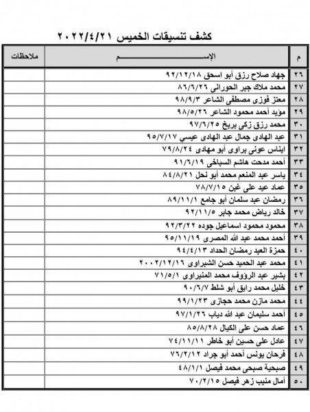 بالأسماء: الداخلية بغزة تعلن كشف "تنسيقات مصرية" للسفر غداً الخميس