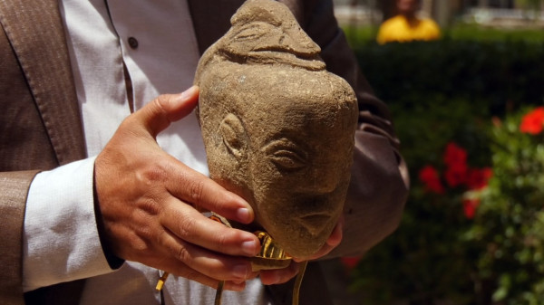 وعثر على التمثال المكتشف، أمس، الإثنين أحد المواطنين أثناء فلاحته لأرضه، بمنطقة الشيخ حمودة بخانيونس بالقرب من القرارة.