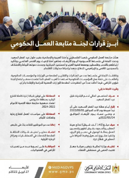 "حددت إجازة عيد الفطر".. أبرز قرارات لجنة متابعة العمل الحكومي