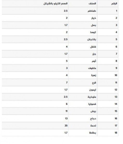 جاءت أسعار الخضروات والفواكة واللحوم الحمراء والبيضاء في قطاع غزة، اليوم الجمعة 29/4/2022، على النحو التالي: