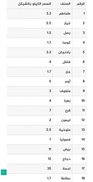 جاءت أسعار الخضروات واللحوم في أسواق قطاع غزة، اليوم الإثنين، على النحو التالي: