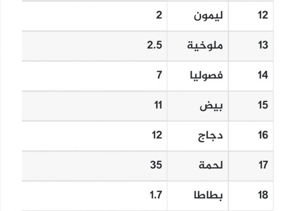 ووفقا لنشرة وزارة الزراعة بغزة، جاءت الأسعار على النحو التالي: