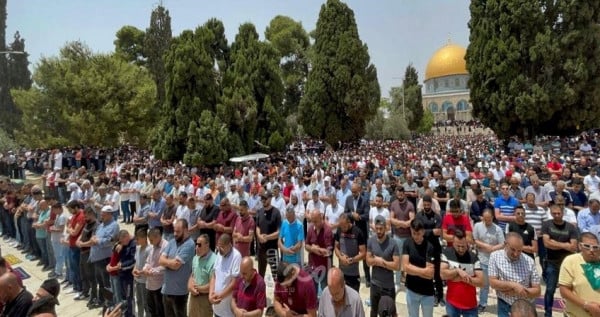 أدى عشرات الآلاف من المواطنين، صلاة الجمعة الأولى بعد انقضاء شهر رمضان المبارك، في رحاب المسجد الأقصى المبارك، رغم التضييقات الاحتلالية.