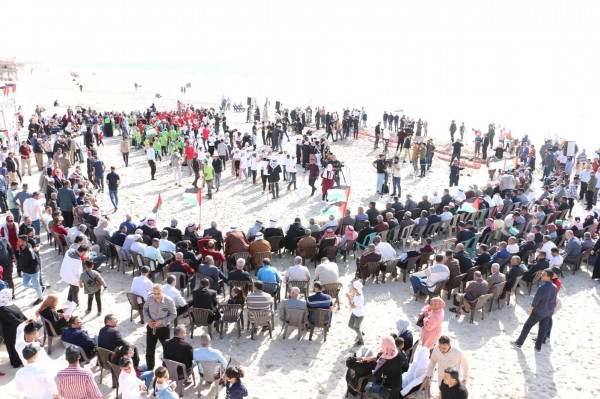 وأضاف أن الجدارية الرملية التي رسمها اليوم الرسامون من جيل الشباب وتجسيدهم لعلم فلسطين بأجسادهم على ساحل البحر الذي سنرى فيه قريباً اسراب العودة القادمة منه الى فلسطين ، حملت رسائل عدة اكدت فيها بان جيل الشباب الذي راهن الاحتلال على نسيان النكبة، هم من يجسدون حلم العودة ويحيون الذاكرة ويعززون الانتماء الوطني وإثبات الهوية الفلسطينية وإيصال صوت شعبنا ونقل قضيته إلى كل ضمير إنساني من رغم كل محاولات الاحتلال لطمس هذه الهوية بطرق شتى.