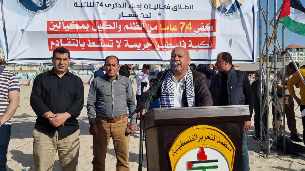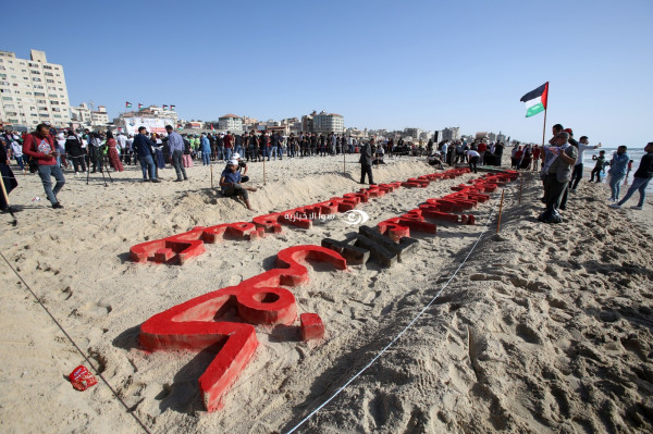 افتتحت دائرة شؤون اللاجئين بمنظمة التحرير الفلسطينية واللجنة الوطنية العليا لإحياء ذكرى النكبة مساء اليوم على شاطئ بحر غزة الجدارية الفنية الرملية "نكبة فلسطين جريمة لا تسقط بالتقادم" إيذاناً بانطلاق فعاليات احياء الذكرى (74) تحت شعار كفى 74 عاماً من الظلم والكيل بمكيالين" .