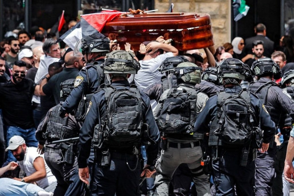 واقتحمت شرطة الاحتلال الإسرائيلي، على موكب تشييع جثمان الشهيدة الصحافية شيرين أبو عاقلة ، كما وأغلقت الطرق والمداخل المؤدية إلى المستشفى الفرنسي في القدس.