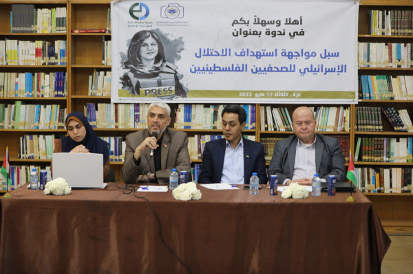 الاحتلال بحق الصحفيين، مشدداً على ضرورة توحيد جهود الرصد والمتابعة لتفادي ذلك بما يعزز مصداقية الرواية الفلسطينية، مشدداً على ضرورة توعية الصحفيين الفلسطينيين والناشطين بالفيديوهات التي يتم نشرها على مواقع التواصل
