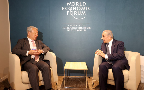 التقى رئيس الوزراء محمد اشتية، اليوم الاثنين، على هامش مشاركته في منتدى الاقتصاد العالمي(دافوس) في سويسرا، رئيس الوكالة اليابانية للتعاون الدولي (جايكا) أكيهيكو تاناكا.