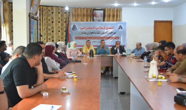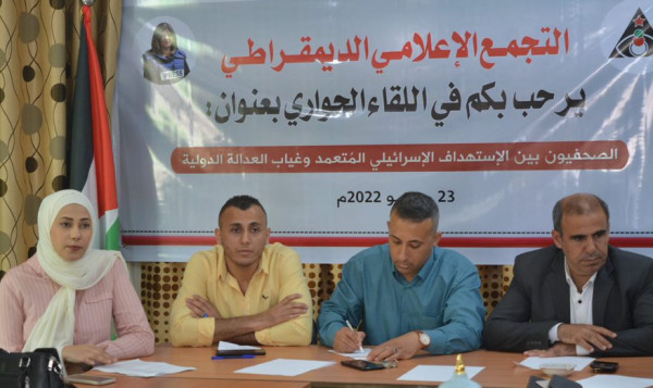 نظم التجمع الإعلامي الديمقراطي، اليوم الإثنين، لقاءً حواريًا بعنوان الصحفيون بين الاستهداف الإسرائيلي المُتعمد وغياب العدالة الدولية، وذلك في مقر التجمع بمدينة غزة.