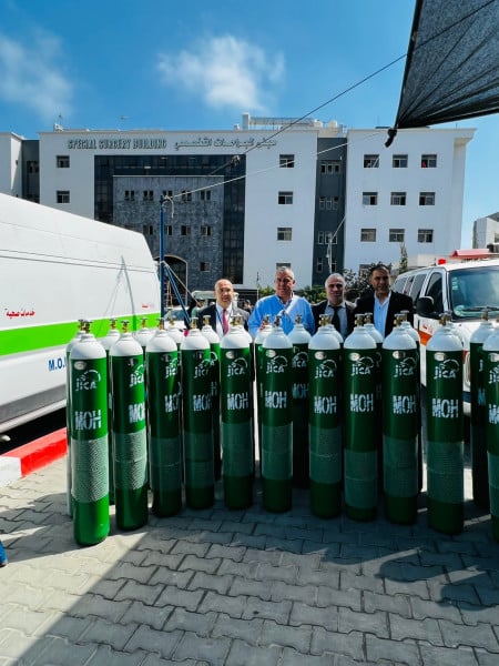 "جايكا" تدعم وزارة الصحة باسطوانات أوكسجين لمستشفيات القطاع