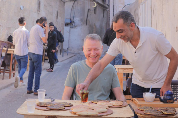 زار رجل الأعمال الفلسطيني بشار المصري، محل أبو زهير للمناقيش في البلدة القديمة بمدينة غزة.