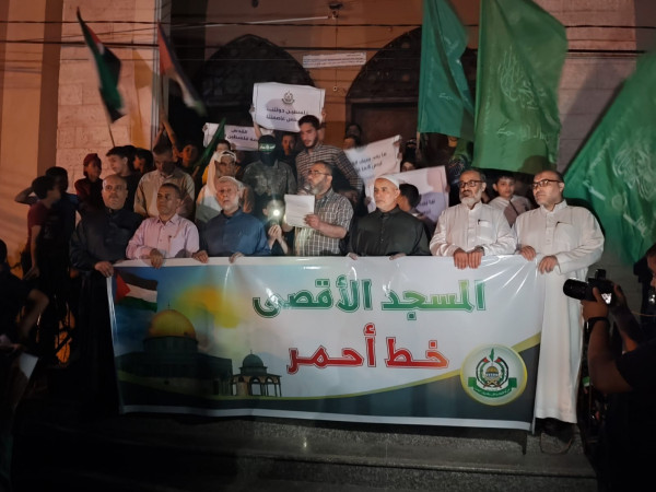 وبدوره، قال القيادي في الحركة، ماهر الحولي: إن "جماهير شعبنا تخرج اليوم لتؤكد مع المقاومة بأن المسجد الأقصى خط أحمر، وأن أي مساس بالمسجد الأقصى أو بأهلنا في القدس