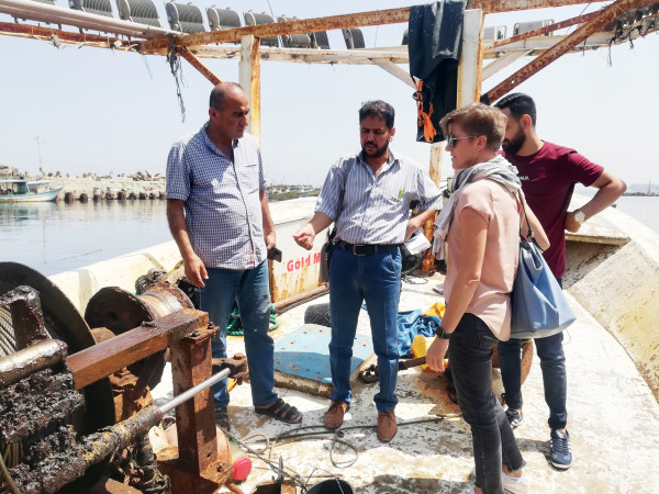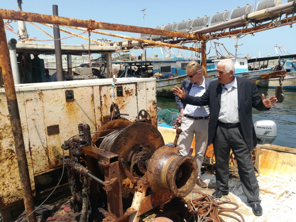 واصطحب طاقم الجمعية الوفد في جولة لميناء غزة حيث اطلع شيش والوفد المرافق عن واقع عمل الصيادين واستمع باسهاب من الصيادين عن حجم المعيقات والعراقيل التي يتعرضوا لها أثناء عملهم بعرض البحر.