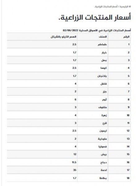 جاءت أسعار الخضروات والدجاج واللحوم في قطاع غزة، اليوم الخميس، كما يلي: