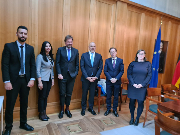 وكانت الجلسة في وزارة الخارجية الألمانية وشارك فيها سفير دولة فلسطين لدى ألمانيا ليث عرفة، بالإضافة إلى عدد من المسؤولين من كلا الطرفين.
