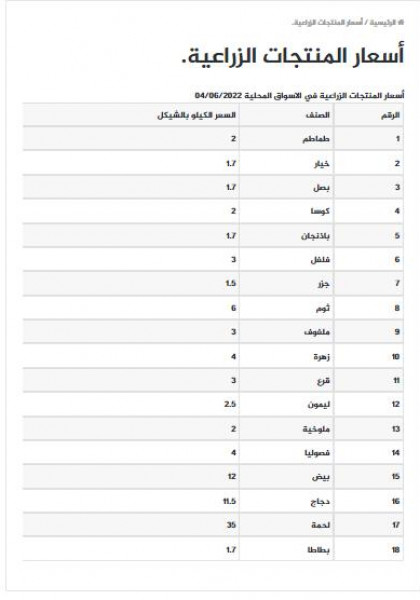 شؤون فلسطينية تعرّف على أسعار الخضروات والدجاج واللحوم في أسواق قطاع غزة اليوم السبت 2022-06-04 رابط مختصر: تابعنا أيضا عبر تليجرام t.me/alwatanvoice اءت أسعار الخضروات والدجاج واللحوم في قطاع غزة اليوم السبت، كما يلي: