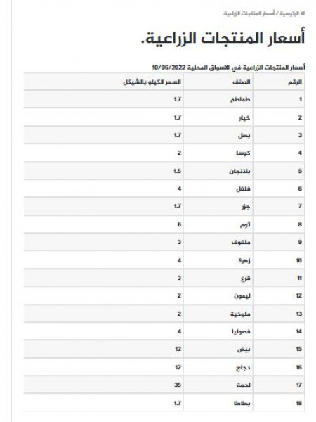 جاءت أسعار الخضروات والدجاج واللحوم في أسواق قطاع غزة، اليوم الجمعة، على النحو التالي: