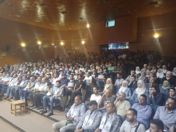 جاء ذلك في كلمةٍ له خلال فعالية نظمتها رابطة فلسطين الطلابية - الإطار الطلابي لحركة الجهاد الإسلامي في فلسطين- الساحة السورية -، بالمركز الثقافي العربي بكفرسوسة في دمشق، تحت عنوان (بإرادتكم نكسر القيد)، وذلك دعماً للأسرى المضربين عن الطعام في سجون الاحتلال، وفي ظلال الذكرى السنوية الثانية لارتقاء فقيد فلسطين الكبير د. رمضان شلَّح، والذكرى السنوية الأولى لارتقاء مؤسس "كتيبة جنين" جميل العموري.