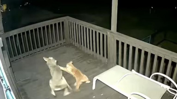 ووفقاً لـ (روسيا اليوم) فقد شارك توني غراي، المقيم في تكساس، لقطات من المعركة، رصدتها كاميرا مراقبة على شرفة منزله في شاطئ سورسايد، حيث يمكن رؤية ذئب يقترب من قطة، ويحاول الإمساك بها، فيما تواجهه وتختبئ بسرعة تحت كرسي الشرفة، في حين يواصل محاصرتها، لتتسلق الشرفة، وتتعلق به ما دفع الذئب للرحيل، وتنزلق بعدها لخارج الشرفة.
