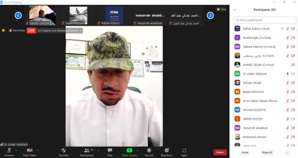 جاء ذلك خلال ندوة إعلامية إلكترونية بعنوان "سبل تعزيز الرواية الفلسطينية في الإعلام العربي" نظمها منتدى الإعلاميين الفلسطينيين بالتعاون مع شبكة محرري الشرق الأوسط وشمال أفريقيا؛ بمشاركة رئيس الشبكة إبراهيم أوغلو ونقيب الصحفيين الكويتيين زهير العباد ورئيس المكتب الإعلامي الحكومي الفلسطيني سلامة معروف ومدير منتدى الإعلاميين محمد ياسين ونخبة من الإعلاميين والمهتمين بالقضية الفلسطينية من أقطار مختلفة. وأدار الندوة الإعلامي الفلسطيني المقيم في تركيا طارق مصطفى.