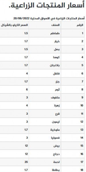 طالع: أسعار الخضروات واللحوم في قطاع غزة اليوم الإثنين