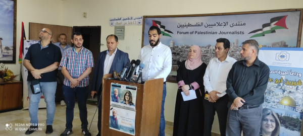 جاء ذلك خلال مؤتمر صحفي نظمه منتدى الإعلاميين الفلسطينيين بمقره في مدينة غزة، وسط مشاركة ممثلين عن وسائل الإعلام وحضور حقوقي.