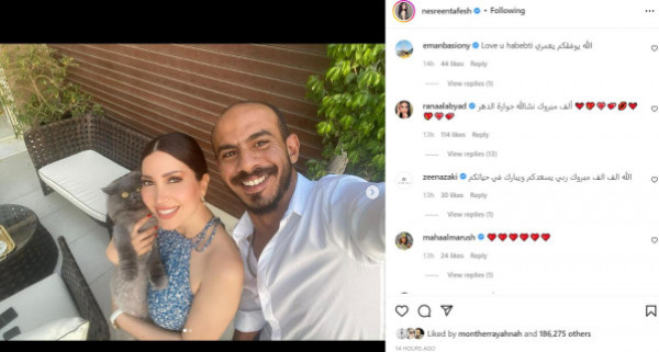 وبعد أن أحدث خبر زواجها ضجة، وسط تكهنات حول هوية زوجها، نشرت نسرين صوراً رسمية برفقة زوجها، وعلّقت "شكرا لكل أمنياتكم الطيبة ومباركاتكم الغالية على قلوبنا محبتكم وصلتنا وأسعدتنا".