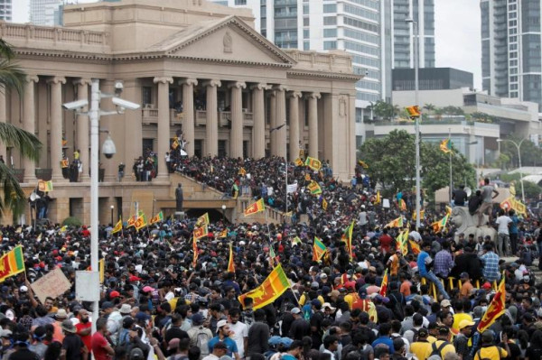 واقتحم المتظاهرون منازل كبار المسؤولين، بمن فيهم الرئيس، وأضرموا النار بأحدها في حالة من الغضب من جراء الأزمة الاقتصادية.
