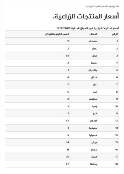 شؤون فلسطينية أسعار الخضروات واللحوم والدجاج في أسواق قطاع غزة اليوم الثلاثاء 2022-07-12 رابط مختصر: تابعنا أيضا عبر تليجرام t.me/alwatanvoice جاءت أسعار الخضروات واللحوم والدجاج في أساق قطاع غزة، اليوم الثلاثاء، على النحو الآتي: