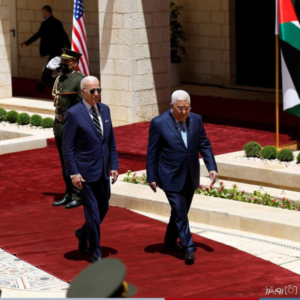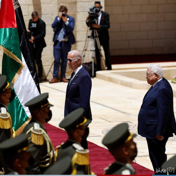 واستقبل الرئيس عباس، نظيره الأمريكي بايدن في مراسم استقبال رسمية، وعُزف النشيدان الوطنيان الأمريكي والفلسطيني.