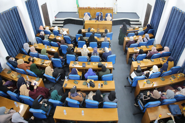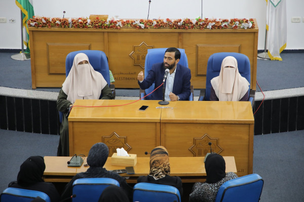 ألقى النائب في المجلس التشريعي، بغزة، مشير المصري، محاضرة سياسية لعدد من طالبات الكتلة الإسلامية في مقر المجلس.