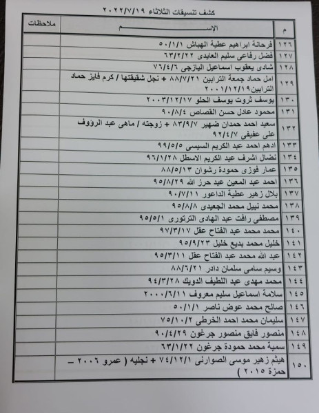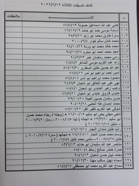 وقالت الهيئة: "على الأسماء الموجودة بالكشف، التواجد الساعة الثامنة صباحاً في الصالة الخارجية للمعبر لتسهيل سفرهم".