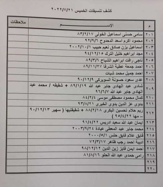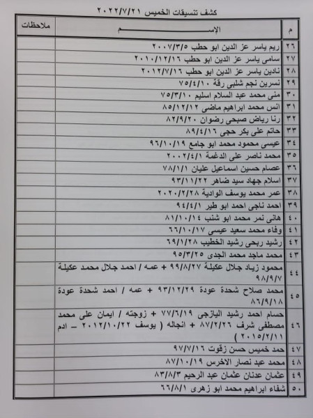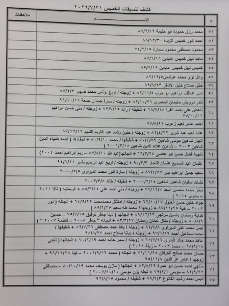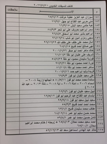 وقالت الهيئة مساء يوم الثلاثاء، إنه "على الأسماء المذكورة بالكشف التواجد يوم الخميس في تمام الساعة الثامنة صباحاً في الصالة الخارجية للمعبر لتسهيل سفرهم".