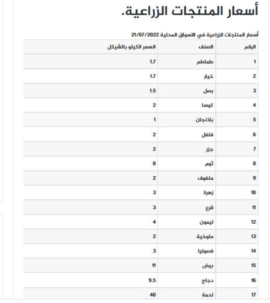 شؤون فلسطينية تعرف على أسعار الخضروات واللحوم في أسواق غزة 2022-07-21 توضيحية رابط مختصر: تابعنا أيضا عبر انستجرام instagram/alwatanvoice جاءت أسعار الخضروات والفواكه والدجاج واللحوم في قطاع غزة، اليوم الخميس، كما يلي: