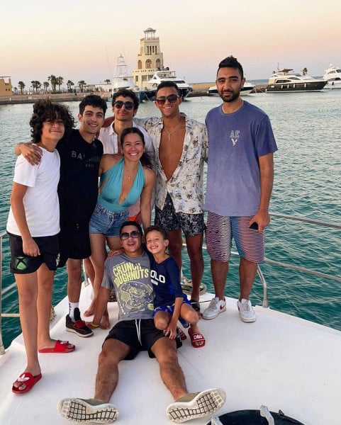 وظهرت في الصورة مع زوجها محمد عبد المنصف، حارس المرمى المصري، الذي يلعب حالياً لدى نادي وادي دجلة، وابنيهما أدهم وآسر، وبعض أصدقاء العائلة على اليخت، وسط البحر. وقبل عدة أيام، أحدثت لقاء ضجة كبيرة، بوشمها الجديد، الذي ضم اسم ابنيها، آسر وأدهم.