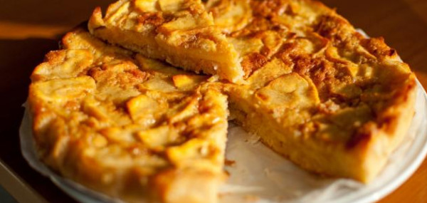 4. لتحضير الحشوة: اخلطي التفاح المقطع، مع السكر، والقرفة، وضعي الحشوة فوق العجينة.