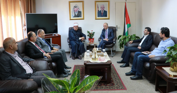 بحث الشيخ حاتم البكري وزير الأوقاف والشؤون الدينية مع القائم بأعمال رئيس سلطة الأراضي الفلسطينية المستشار علاء التميمي سبل حماية وتسجيل الأراضي الوقفية وآلية تذليل كافة الصعوبات التي تعيق تثبيتها بكافة المحافظات .