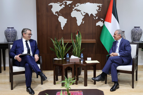 جاء ذلك خلال استقباله وزير الدولة في وزارة الخارجية الألمانية توبياس ليندنر، اليوم الخميس، في مكتبه برام الله، بحضور ممثل ألمانيا لدى فلسطين أوليفر اوفتشا.