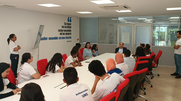 وذلك بحضور السيدة احسان المنصوري – مستشارة رئيس الجامعة للشؤون الطلابية ومديرة قطب الحياة الطلابية، والسيدة صوفيا سعد - منسقة الحياة الطلابية في جامعة محمد الخامس في العاصمة المغربية الرباط، خلال المؤتمر الدولي للمدارس والمعاهد الإدارية حول العالم IASIA.