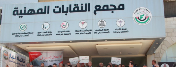 كما ودعت كافة منتسبي وأعضاء النقابات المهنية والاتحادات الشعبية للمشاركة الفاعلة في أية فعاليات احتجاجية تعلن عنها نقابتي المهندسين والمحامين وأية نقابة أو اتحاد، تدعو لفعاليات وخطوات تصعيدية في سياق نضالها النقابي والوطني.