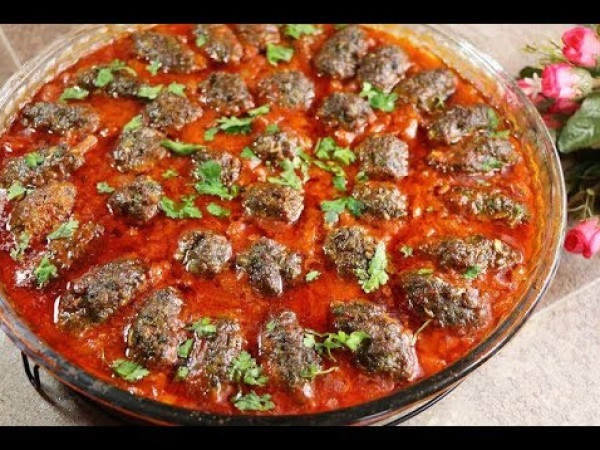 لحم مفروم : 1 كيلو (قليل الدهن / مفروم مع ملعقة صغيرة من الكزبرة، وبقدونس، وثوم، وزنجبيل).