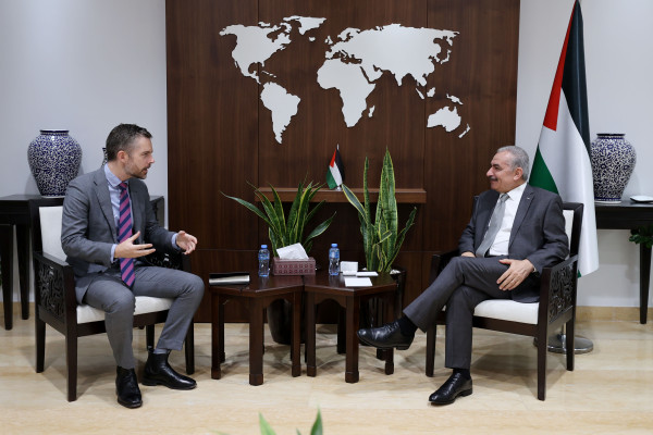 استقبل رئيس الوزراء د. محمد اشتية، اليوم الثلاثاء في مكتبه برام الله، رئيس مكتب تمثيل أستراليا الجديد لدى دولة فلسطين ادوارد راسل، حيث وضعه في صورة الوضع السياسي العام في ظل انسداد الأفق السياسي، وانتهاكات الاحتلال الإسرائيلي المتواصلة بحق شعبنا وأرضه ومقدساته.